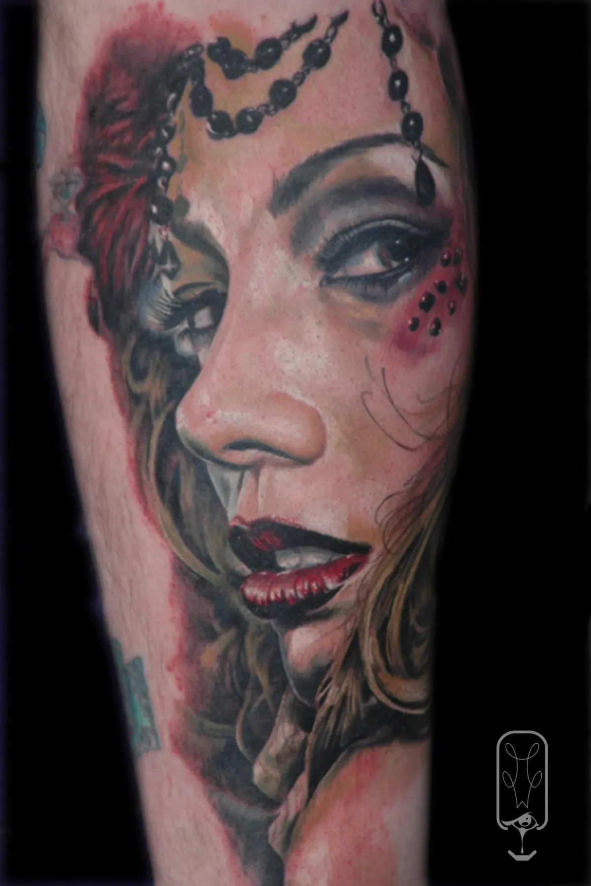 I use many tools, from drawing right on the body, all the way to full digital paintings and 3D models for tattoo projects.
